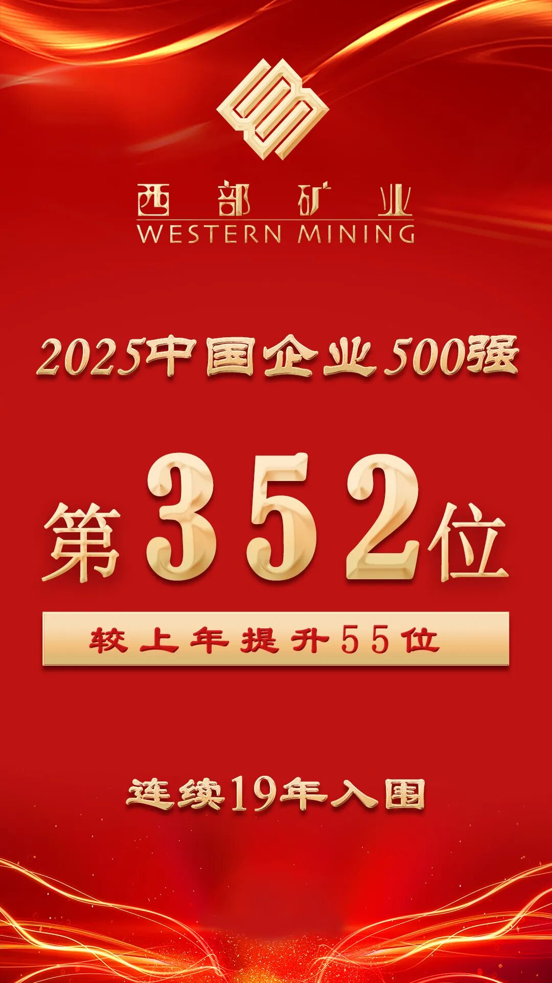 9月15日,2025中国企业500强新闻发布会在北京召开,中国企业联合会、中国企业家协会连续第24次向社会发布了“中国企业500强” 榜单。西部矿业(601168)集团有限公司以营业收入687.96亿元入围中国企业500强,排名第352位,较上年提升55位,营业收入较上年增加96.86亿元,这是公司连续第19年入围中国企业500强榜单,也是青海省唯一入围企业。